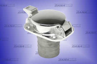 Polished stainless steel gas fill for 2" fuel hose. Base dimensions are 3" X 4.5".